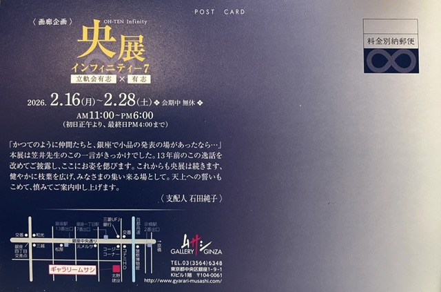 >開催中・開催予定の展覧会 >過去の展覧会2 過去の展覧会1 DM、会場風景、YouTubeを掲載しています 央展 インフィニティ―7